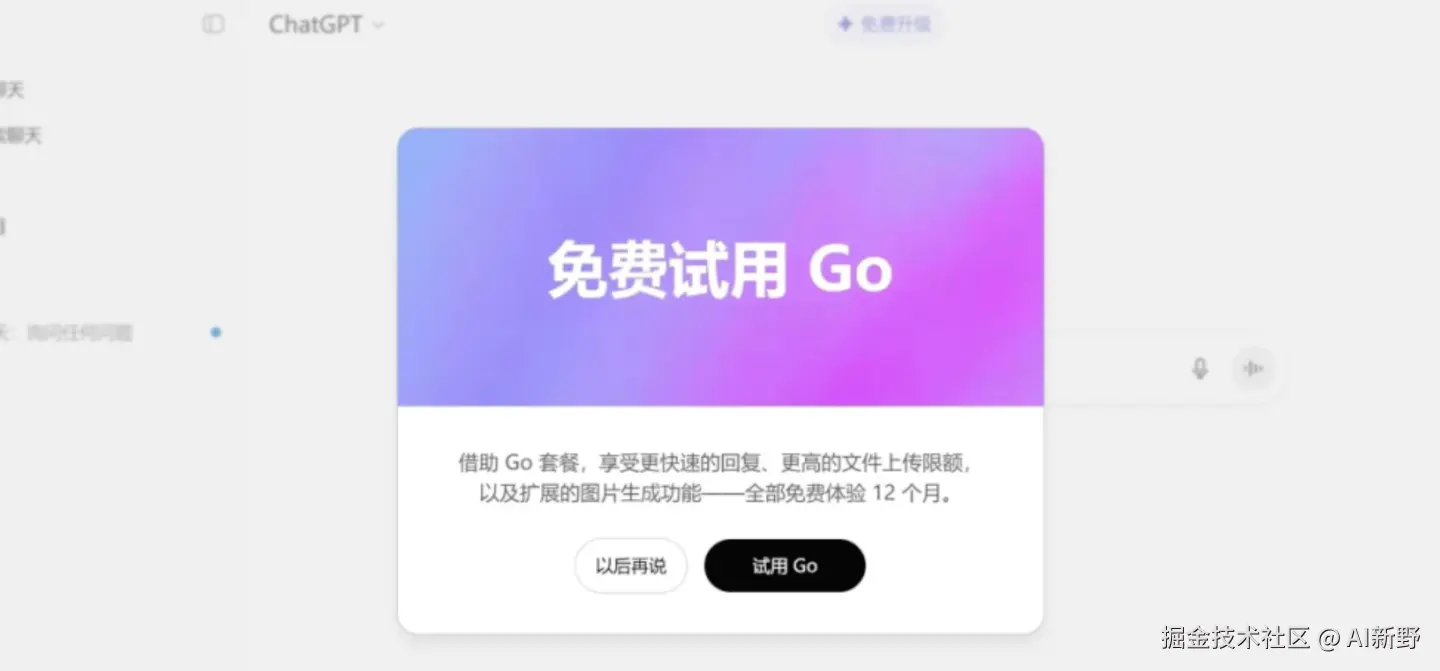 最近OpenAI向印度用户免费提供一整年的ChatGPT Go会员!