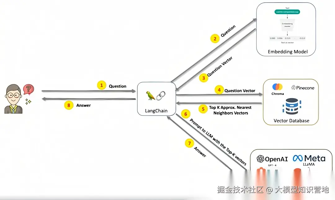 - 用户提问 → 通过模型包装器构造问题