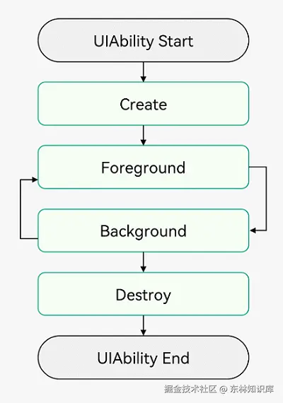 UIAbility的生命周期包括Create、Foreground、Background、Destroy四个状态,如下图所示。
