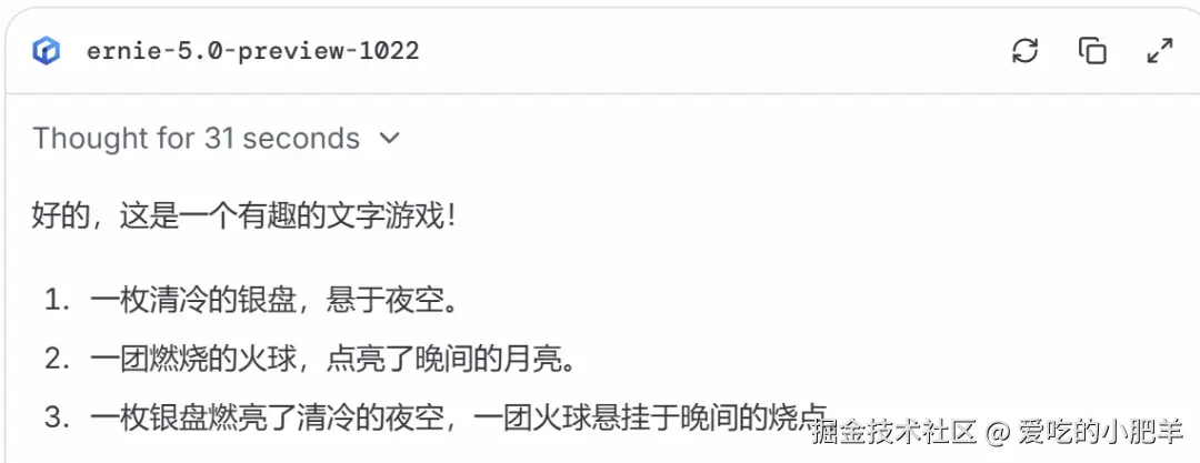 整体体验下来会发现,文心-5.0-Preview在文本能力上确实提高了不少,尤其是在创意写作以及造梗方面,表现十分不俗。