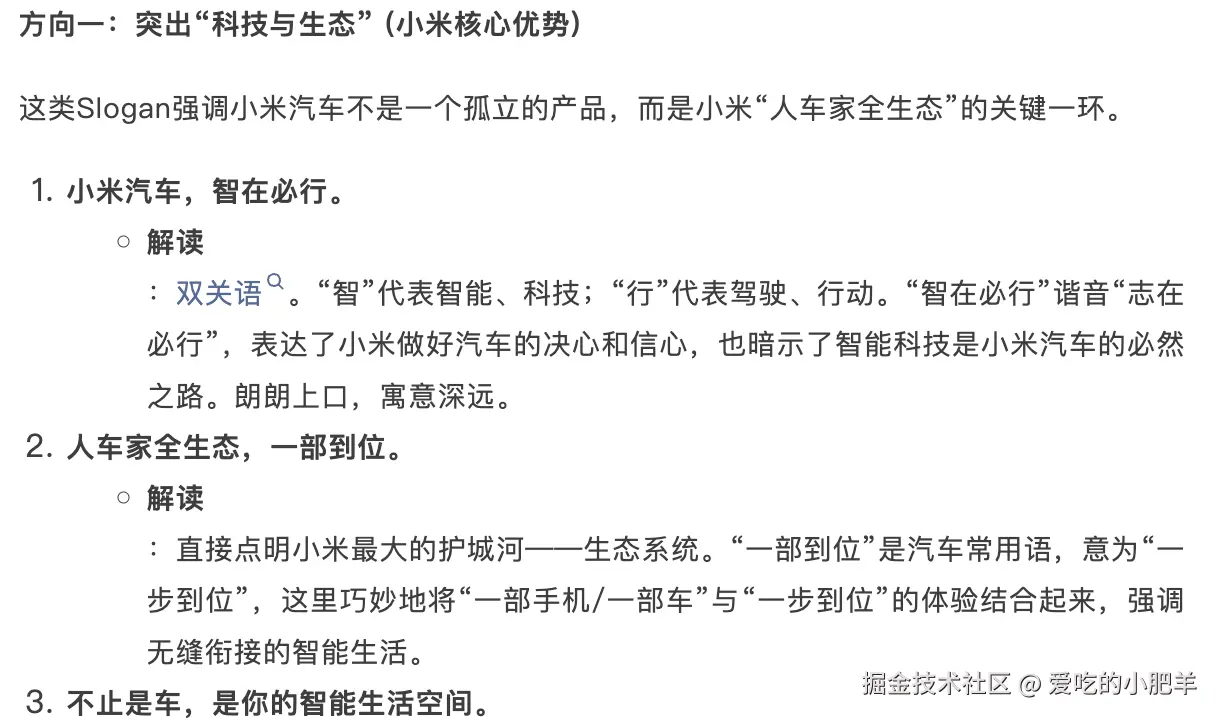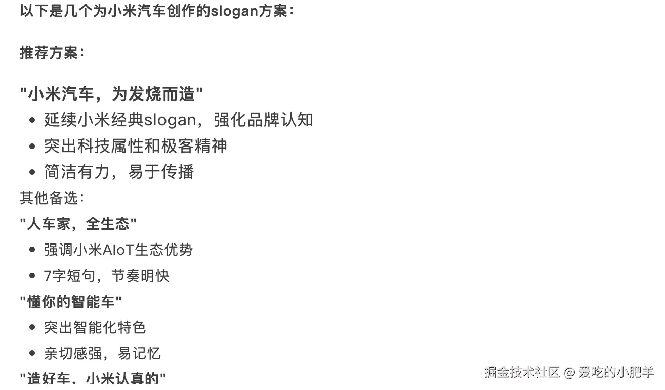 提示词:给小米汽车写一个Slogen,朗朗上口,让人一听就能记住。