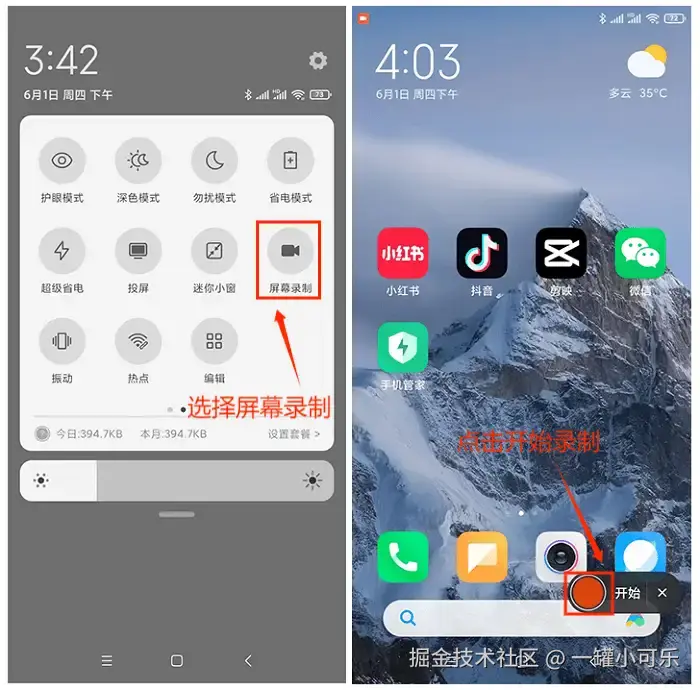 首先,我们来聊聊小米手机自带的录屏功能。这个功能是小米屏幕录制快捷方式,也比较适合日常使用。操作步骤比较容易上手,你只需要下拉手机通知栏,在控制中心里找到那个像小摄像机图标的 “屏幕录制” 快捷开关,点击后桌面就会出现 “录制” 按钮。接着点击此按钮就可以开始录制了。是不是比较简单?