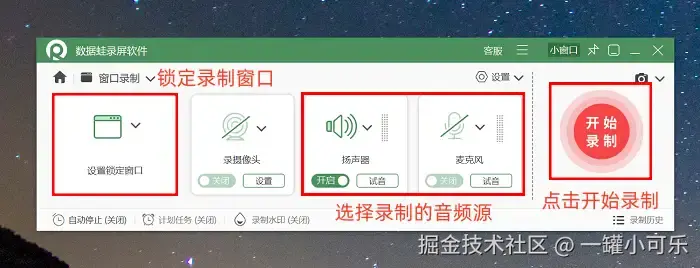 数据 蛙录屏软件的操作也不复杂,具体如下: