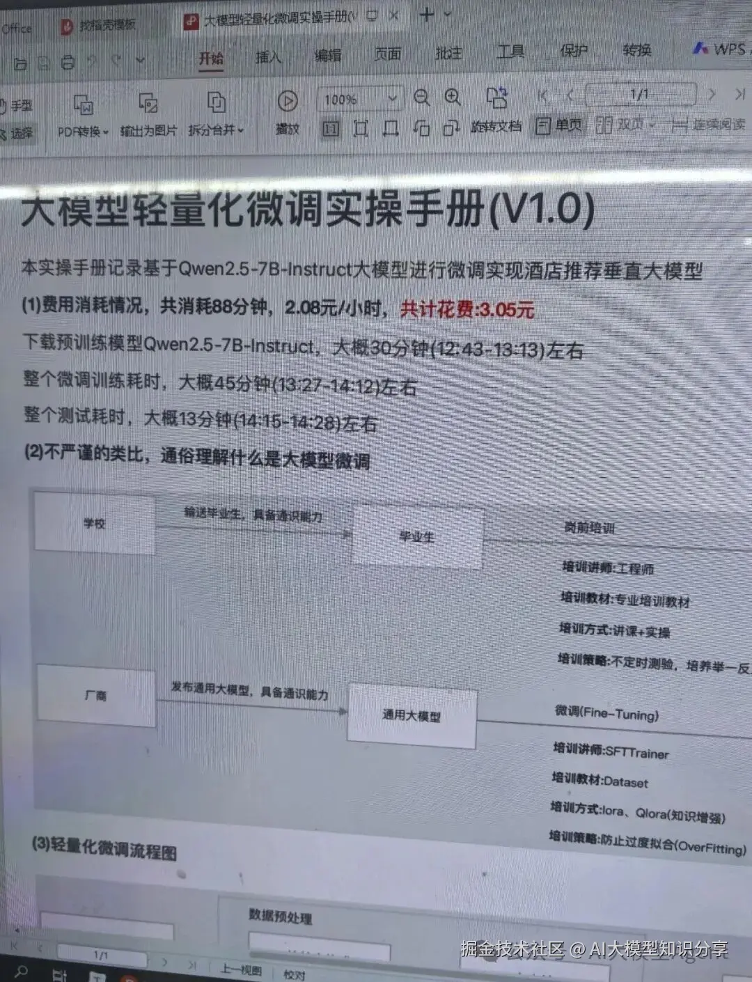 完整步骤我都整理到这份手册里面了,内容从环境搭建、模型下载、LoRA**训练、实际测试到Web部署的完整流程!!