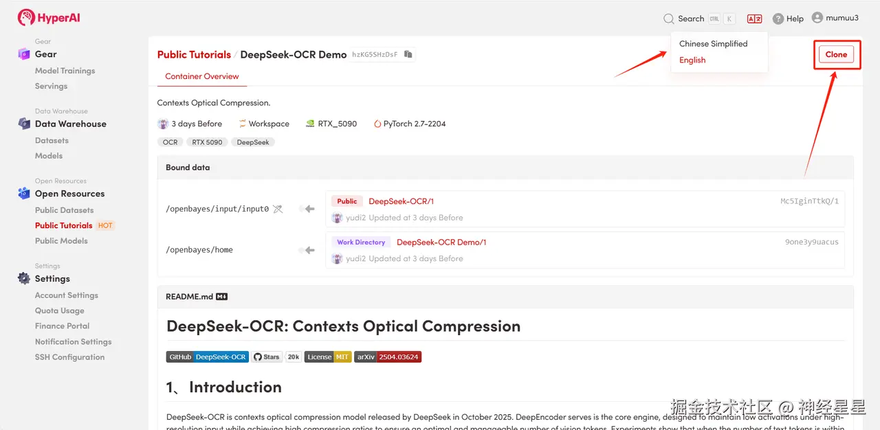 「DeepSeek-OCR:「视觉压缩」替代传统字符识别」现已上线 HyperAI 超神经官网(hyper.ai)的「教程」板块,快来一键部署体验!