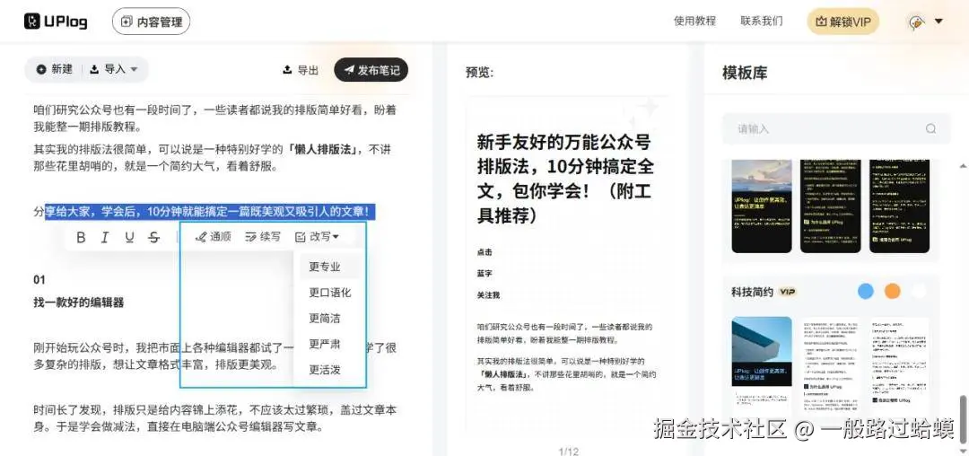 而 uplog 编辑器凭借其全能型设计工具、专业图文排版以及新媒体编辑功能,精准贴合小红书平台特性与创作者需求,为创作者们提供了全面且有效的解决方案。