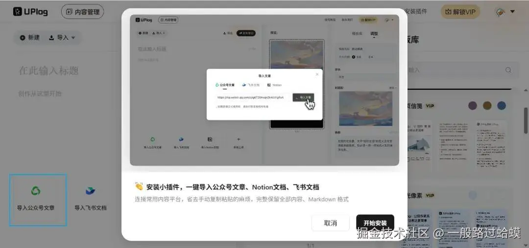 跨平台迁移 : 微信公众号文章转小红书笔记怎么弄?利用 uplog 的一键导入功能,自动提取还原格式,再通过智能分页拆分内容。