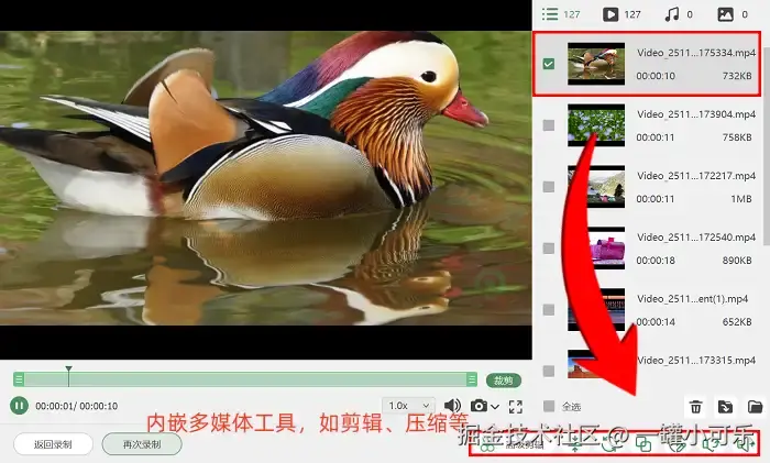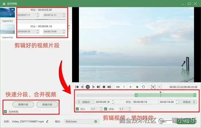 步骤3:录制结束后,进入视频预览界面,在该界面右下角找到 “高级剪辑” 工具。利用该工具,能够对视频进行快速分段、添加淡出等基础特效处理。