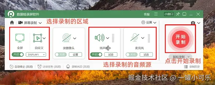 使用数据 蛙录屏软件的操作步骤如下: