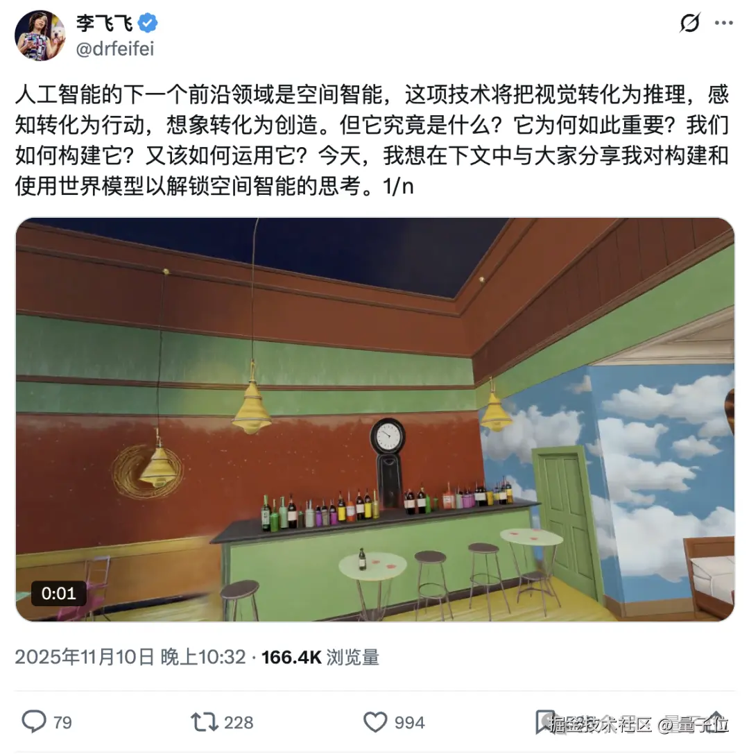 刚刚,AI 教母李飞飞发表长文,首次系统性地解释了什么空间智能、为什么重要以及如何构建能够解锁它的世界模型。