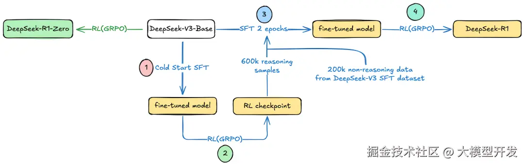 DeepSeek R1系列训练流程图,源自:Elwin Wong