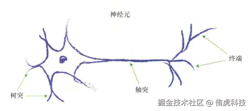 相信你肯定能理解,只是可能对f(x)函数有些好奇,它具体内容是什么呢?这个函数也被称为**「激活函数」**,为什么叫这个名字?这就得提感知机的另一个名字 —— 人工神经元。其实感知机正是受神经元结构启发而被提出来的: