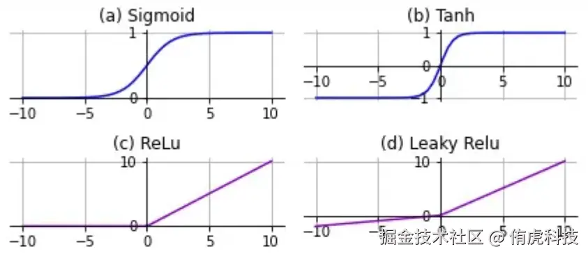 - Leaky ReLU:ReLU的改造,使得对负数输入也有响应,但并没有说它一定好于ReLU。如果你用ReLU训练出现问题,可以换这个试试。