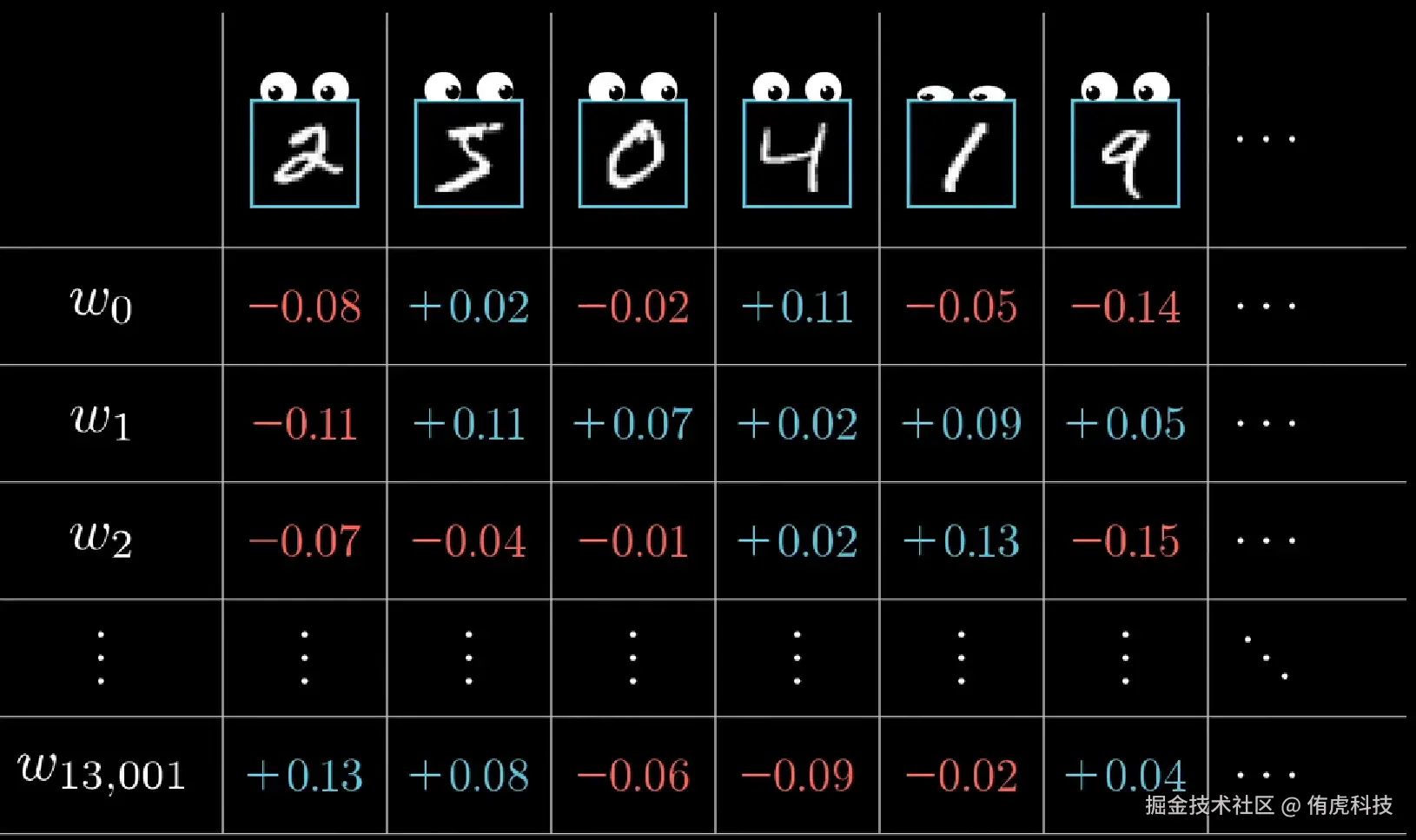 要如何为神经网络的各个神经元的各个权重设置正确的值,使它能够输出我们预期的结果呢?手动调肯定不现实,所以我们会运用一些数学知识让程序自行调整权重,这个过程就是「训练/学习」。