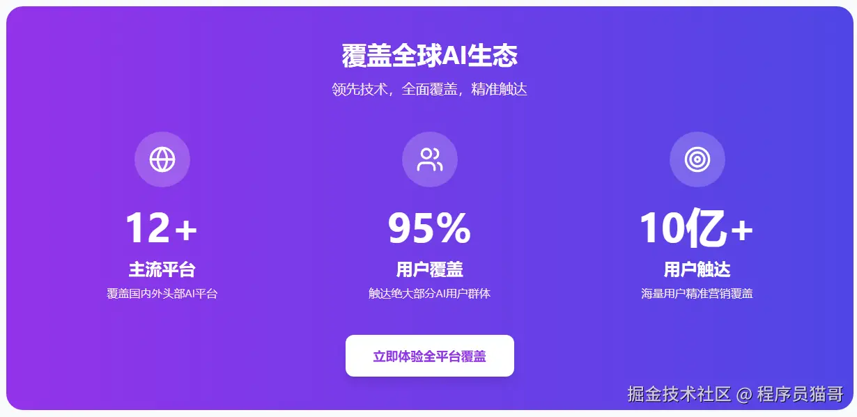 - **动态模型适配: **实时追踪大模型更新,确保内容持续被推荐。