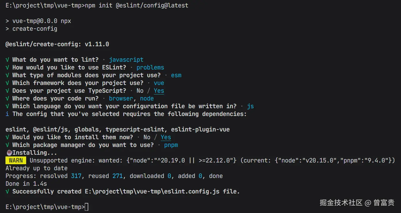 经过上述操作会安装 eslint 必要的包以及生成 eslint.config.js 配置文件