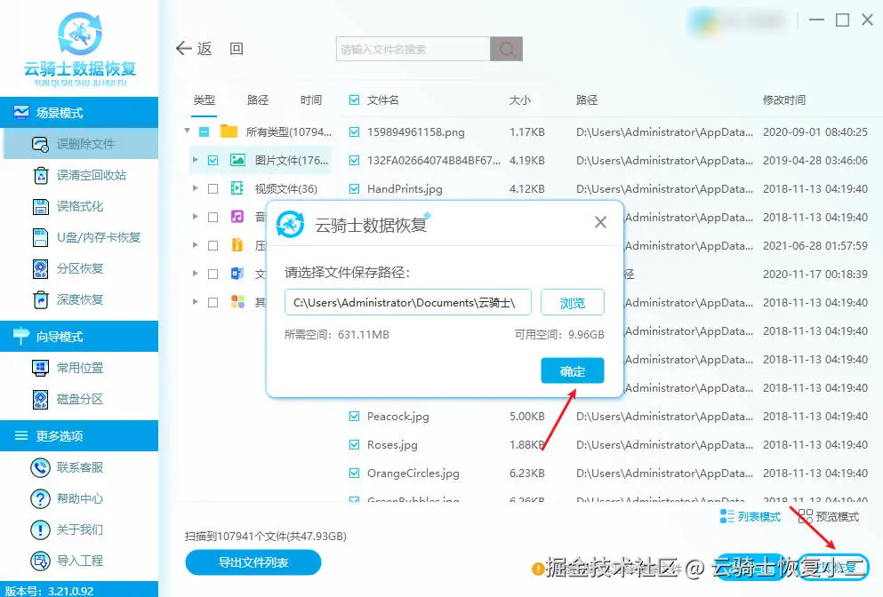 如果你尝试了以上所有方法,依然找不到所需文件,如何恢复D盘丢失的文件?这时,我们可以使用专业数据恢复软件扫描D盘来查找,那么,文件恢复用什么软件好?在众多工具中,“云骑士数据恢复”作为一款对新手非常友好的软件,值得一试。