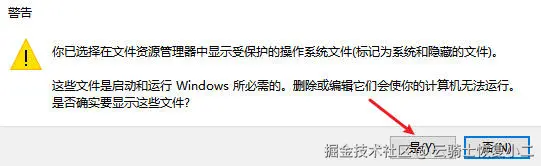 5、取消勾选“隐藏受保护的操作系统文件(推荐) ”。取消时系统会弹出警告,点击“是”即可。