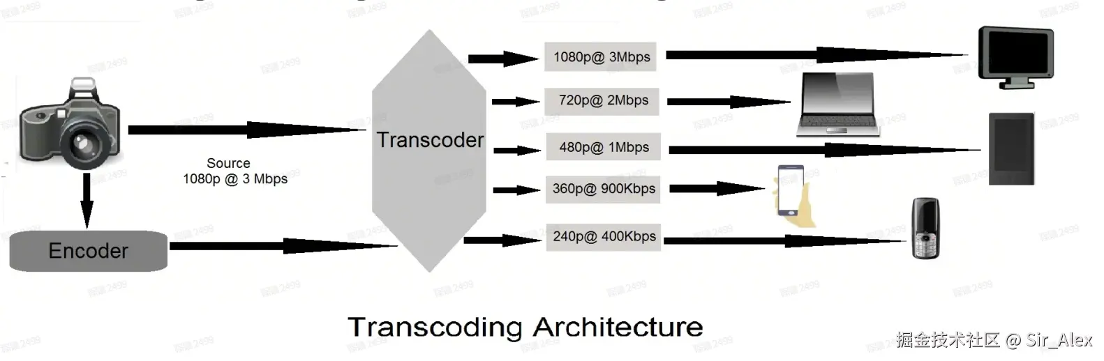 视频转码(Video Transcoding)是指将已经压缩编码的视频码流转换成另一个视频码流,以适应不同的网络带宽、不同的终端处理能力和不同的用户需求。转码本质上是一个先解码、再编码的过程,因此转换前后的码流可能遵循相同的视频编码标准,也可能不遵循相同的视频编码标准。