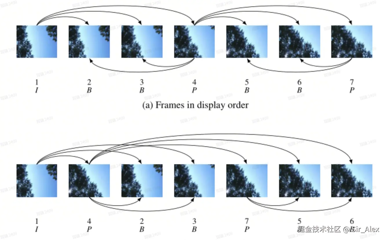 B 帧是需要根据前一个和后一个I帧或P帧计算所得。