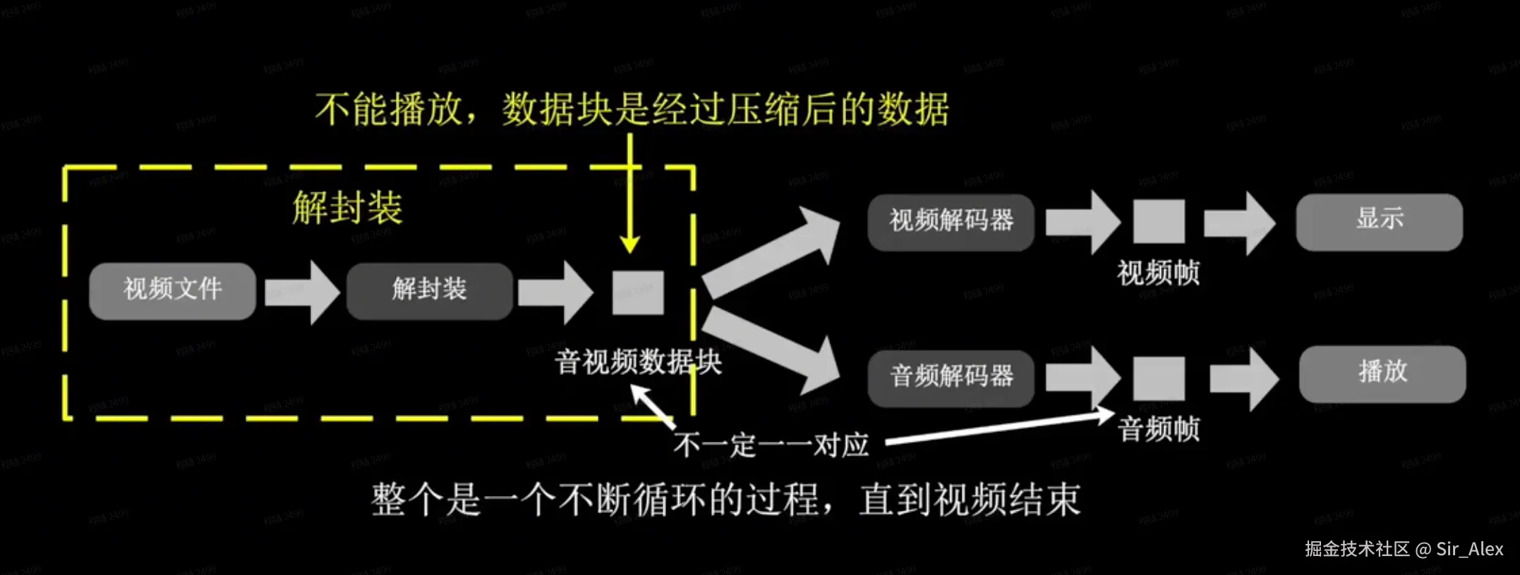 其实就是在解封装和解码后对每一帧的图像进行处理,如改变分辨率采样率等,之后再重新编码、封装即可。