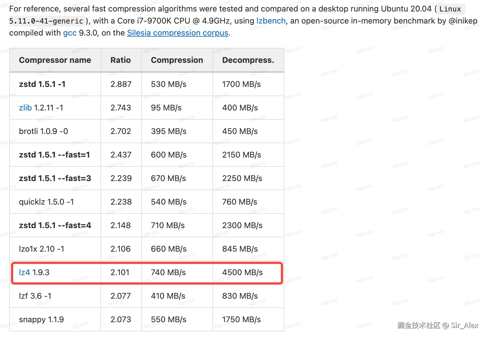 压缩算法Benchmark(源自zstd官方认证)