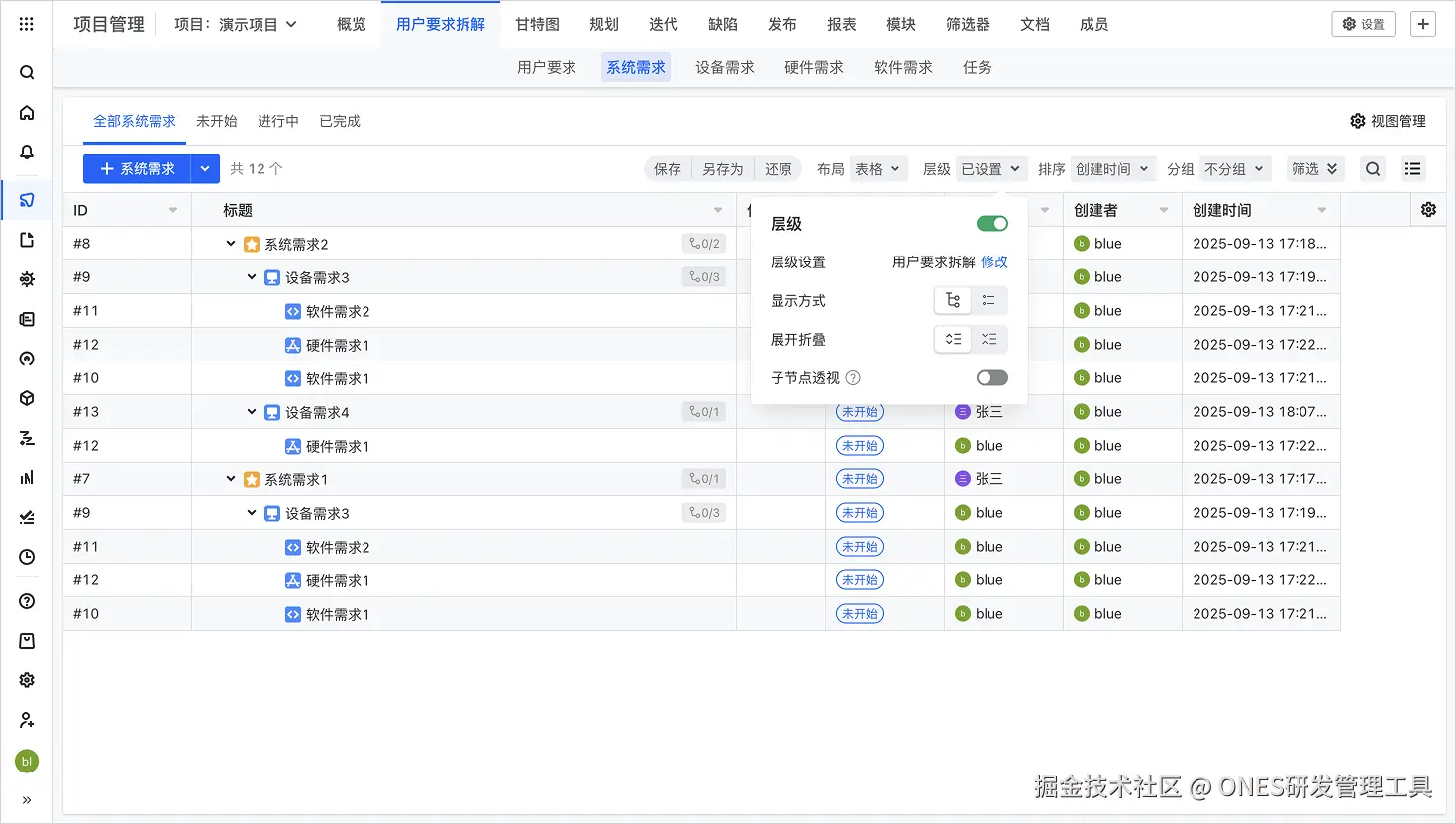 在引用层级结构后,工作项列表等视图即可按父子关系,以树状结构清晰展示从顶层需求到各级任务的分解层次。