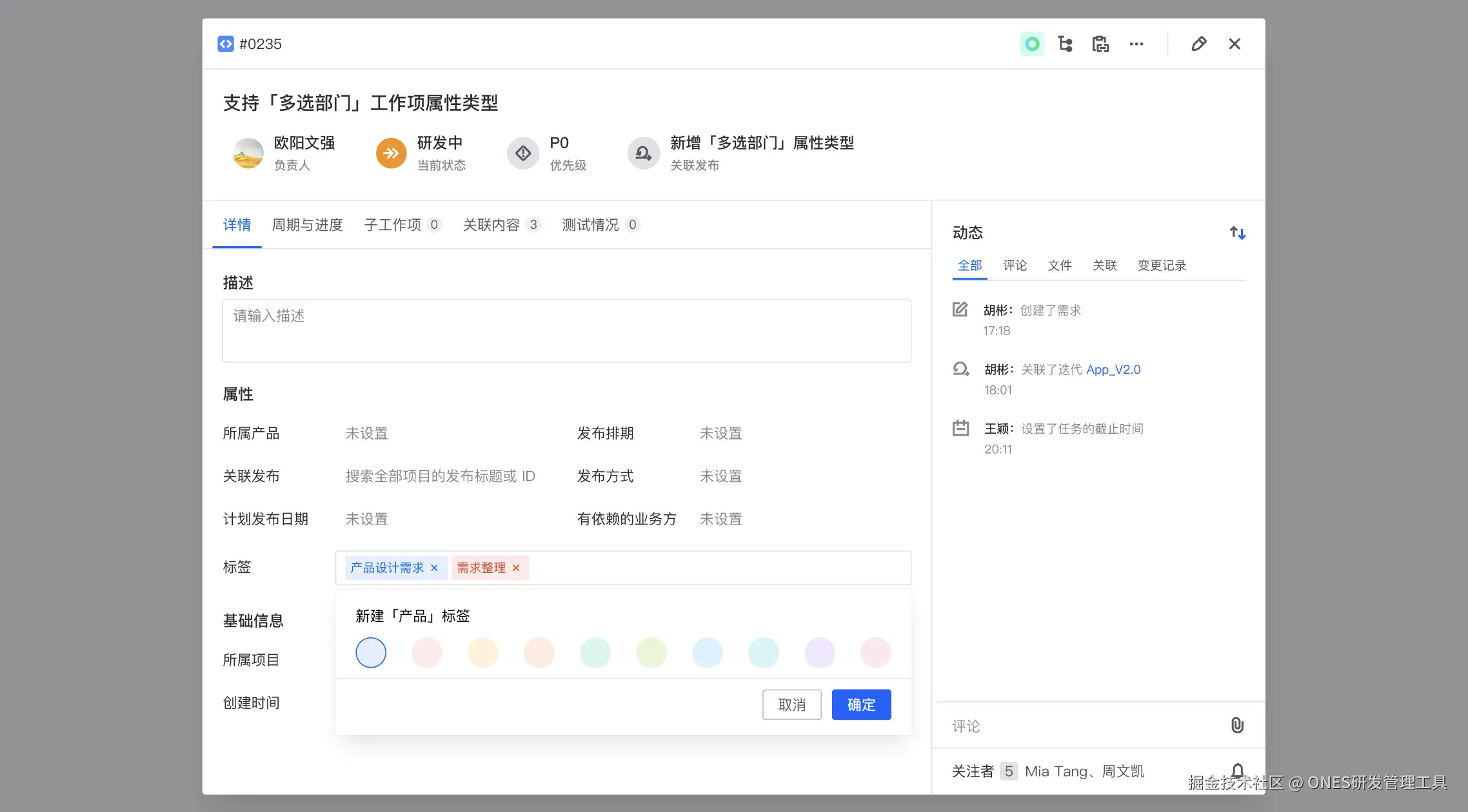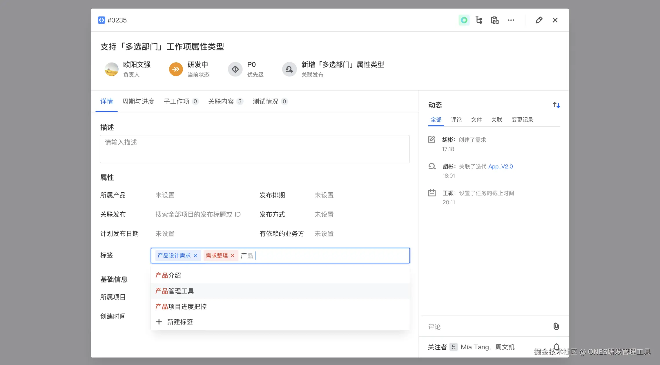 无论是产品侧、研发侧还是项目管理者,都能通过标签快速筛选、分组并追踪进展,从而实现更灵活、更自主、也更贴合习惯的信息管理。