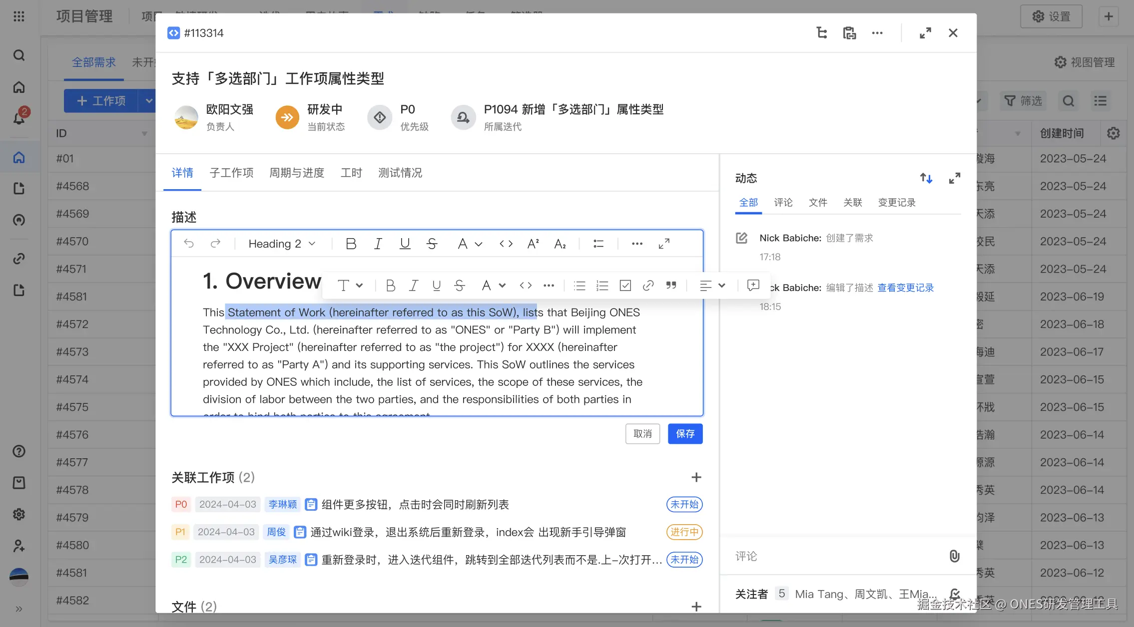 ONES Project 工作项描述升级为 ONES Wiki 编辑器