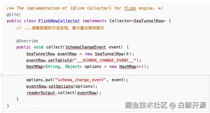 ✅扩展 FlinkRowCollector 的 collect 方法,支持变更事件的收集。