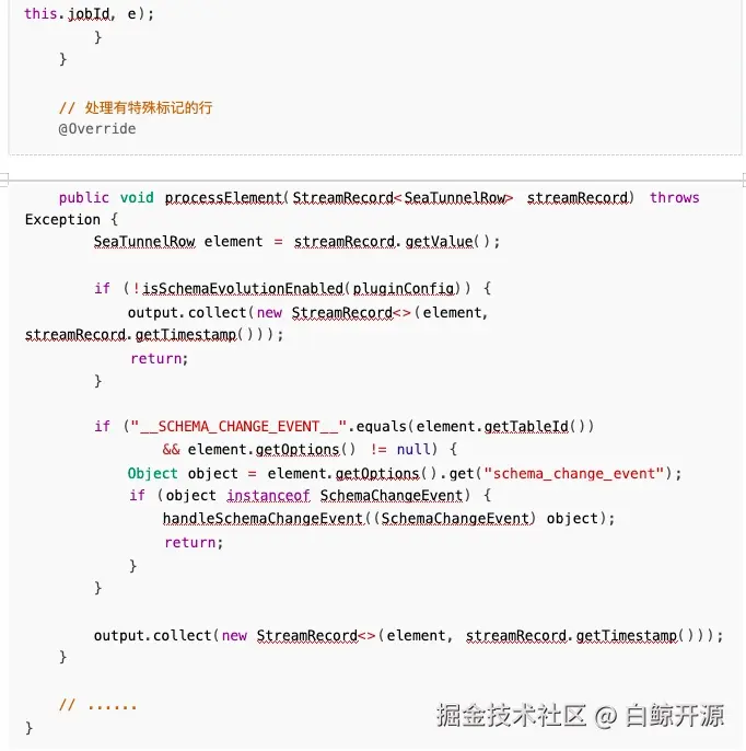 - 在 SeatunnelRow 中添加特殊标记,比如在 options 里面添加一个选项,如果遇到事件,存储到额 外信息里面,这样对链路入侵性不高,但是违反单一设计原则,按理来说 SeatunnelRow 不应该关 心事件,只负责数据流转,之后如果架构升级可以重构,目前以实现功能为主,减小风险。