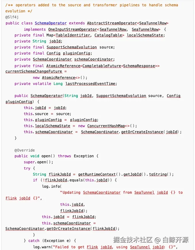 ✅实现 SchemaOperator 算子,检测被 source 端发出的变更事件并处理,支持变更事件透传到下 游。
