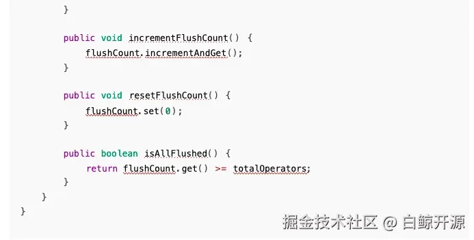 实际上在 Flink CDC 的实现中,增量快照阶段,按照用户定义并行度开启任务,读取快照数据;进 入增量阶段后,为了保证顺序,只会保留一个任务来读取,所以我们不需要给协调器多么复杂的实现, 让它正常接收 sink 端响应即可,也不用考虑多个分区重复上报以及顺序问题: