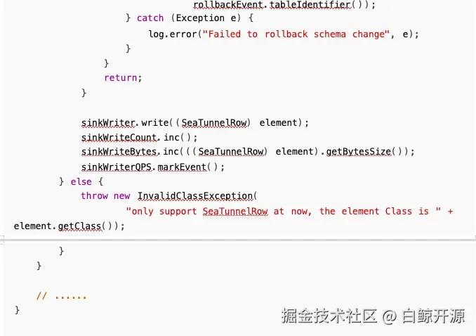 但是这样同样会带来一个问题,就是我们 new 了一个空行,会导致 sink 端的写入报错,所以需要 在 sink 端检测: