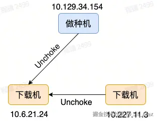 - 10.129.34.154和10.227.11.3分别给10.6.21.24回复Unchoke消息,表示说愿意upload data给10.6.21.24;