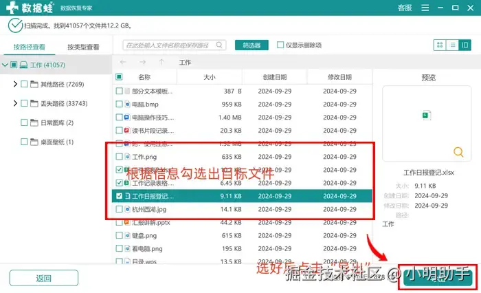 步骤2: 在软件扫描结束后,我们就能在指定的位置选择出自己需要恢复的SD卡文件(可以一次单选或多选)选择完毕后点击“导出”,让勾选出来的文件恢复;