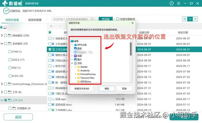 步骤3: 在“浏览文件夹”的小窗中选择导出文件的保存位置。