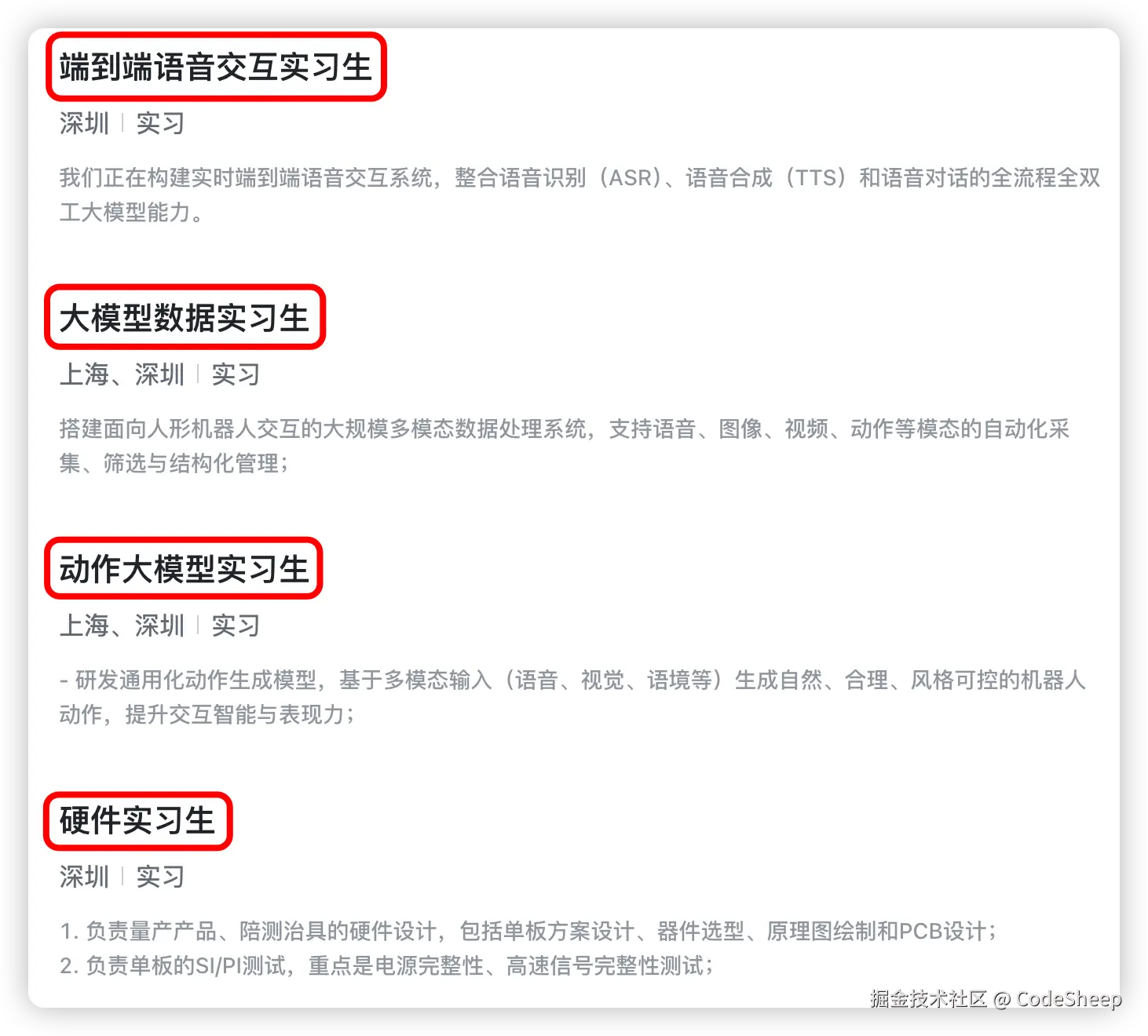 - 算法类:具身算法工程师、运动控制算法工程师、多模态大模型算法工程师等