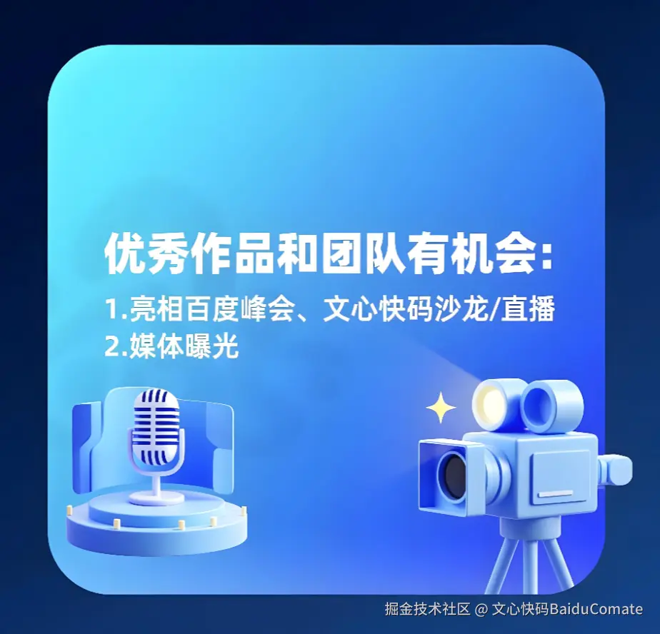 5.鼓励多渠道分享(百度星河社区、稀土掘金、CSDN、知乎等技术社区和社交媒体)作品,可额外瓜分价值5w元人气奖;