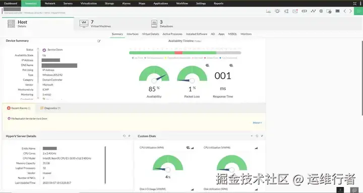 若不监控Hyper-V主机的可用性,即便主机仅停机1分钟,也可能导致其下所有虚拟机无法访问,进而中断关键业务流程。而忽视对"主机不可用诱因"(如硬件故障、网络连接问题)的主动监控,会大幅增加长时间停机的风险。