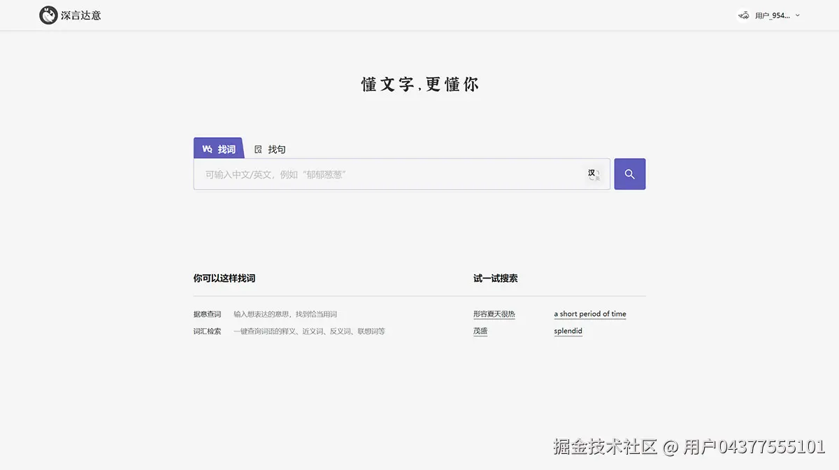 深言达意是一款可根据模糊描述,找词找句的智能写作工具。产品基于强大的语言理解和算法能力,助你在深邃词海中快速找到更恰切的表达,妙笔生花,灵感迸发。 产品核心功能“据意查词查句”,可以实现高效准确找到与输入意思相关的好词好句;支持筛选词语、成语、惯用语和古汉语等多类别;覆盖名言、古诗文、小说散文等多场景;支持中英文输入和双语搜索结果。