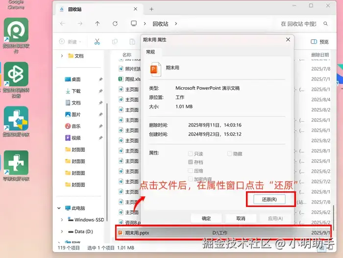删除的数据恢复建议2:检查回收站文件并还原