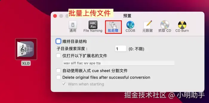 使用X Lossless Decoder将音频格式转换的操作步骤依次为:导入音频文件——在【偏好设置】中选择输出格式——点击揭秘即可。