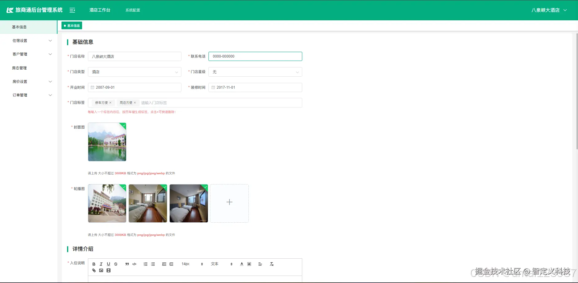 在智慧文旅的背景下,酒店不再是孤立的住宿单元,而是融入当地文化、旅游生态的核心节点。因此,其管理系统中的“门店信息管理”功能也超越了传统酒店ERP的基础信息维护,升级为一个集信息中枢、运营支撑、营销赋能和数据决策于一体的综合性平台。