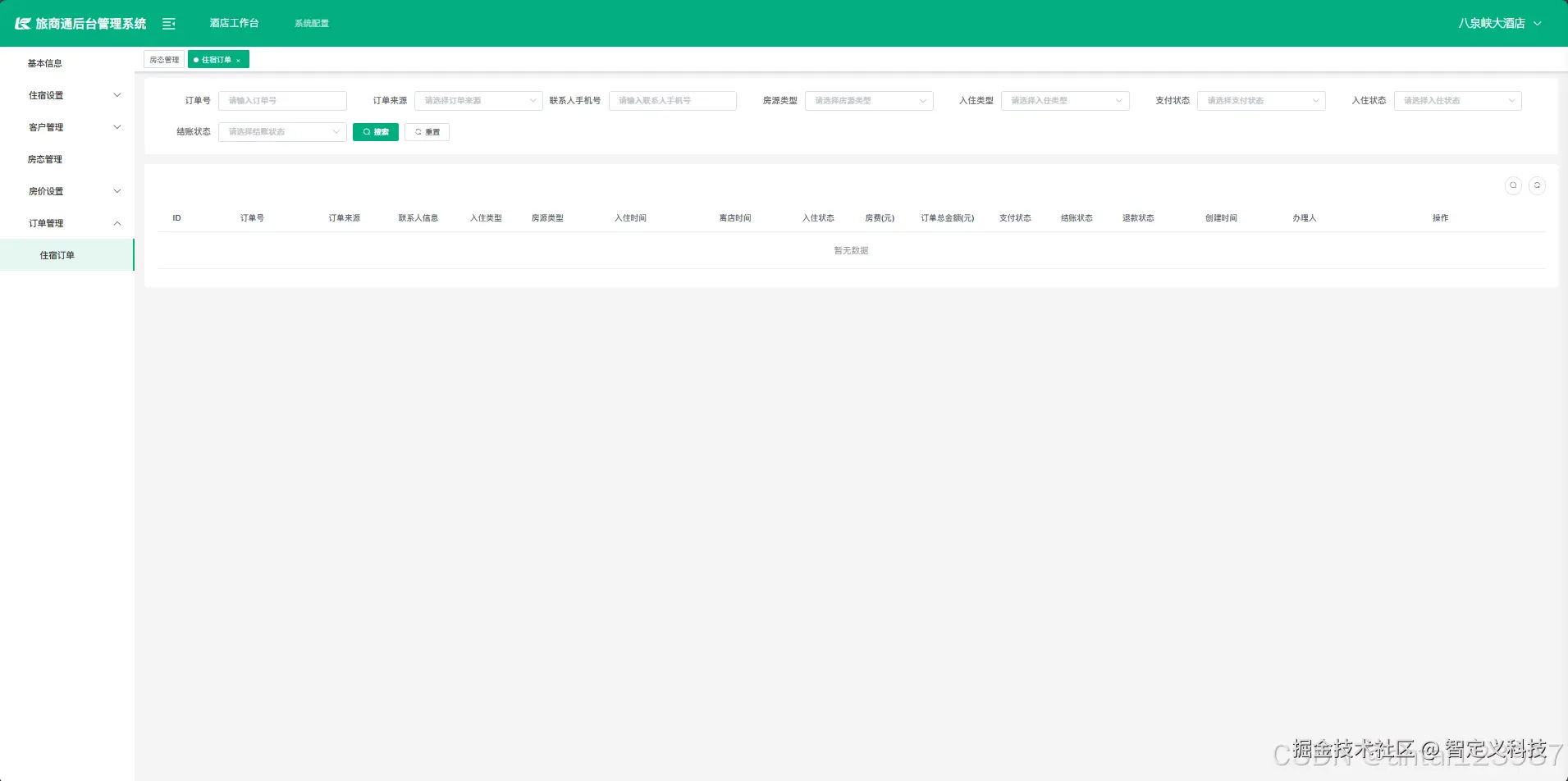 3、订单管理-住宿订单
