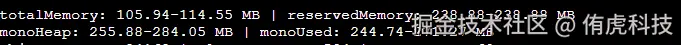 因此,你所观测到的reservedMemory (238MB)小于monoHeap (255-284MB)很可能是因为GetTotalReservedMemoryLong()返回的并非真实的总预留内存,而是一个被截断、未更新或仅包含部分内存池的值。