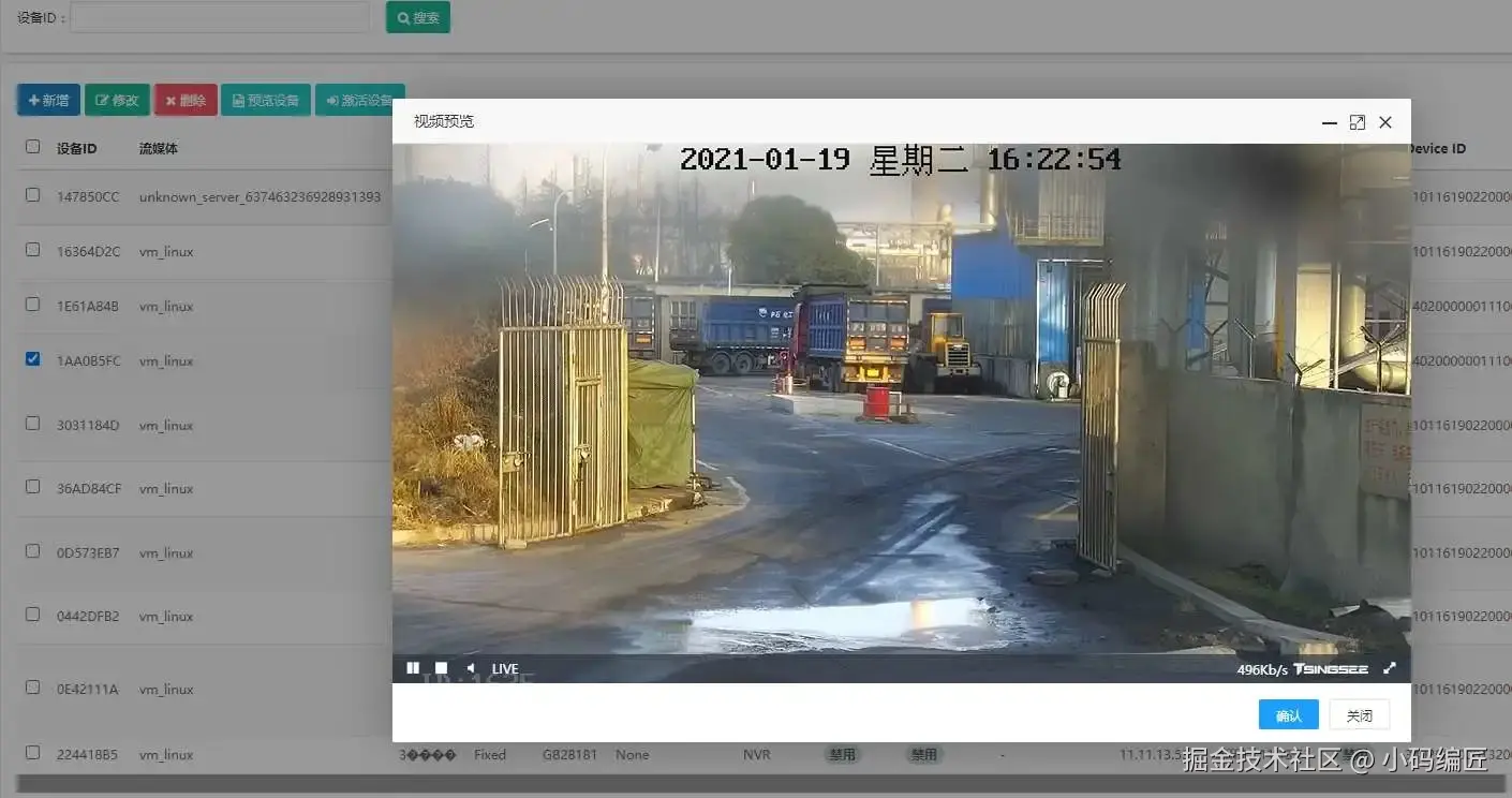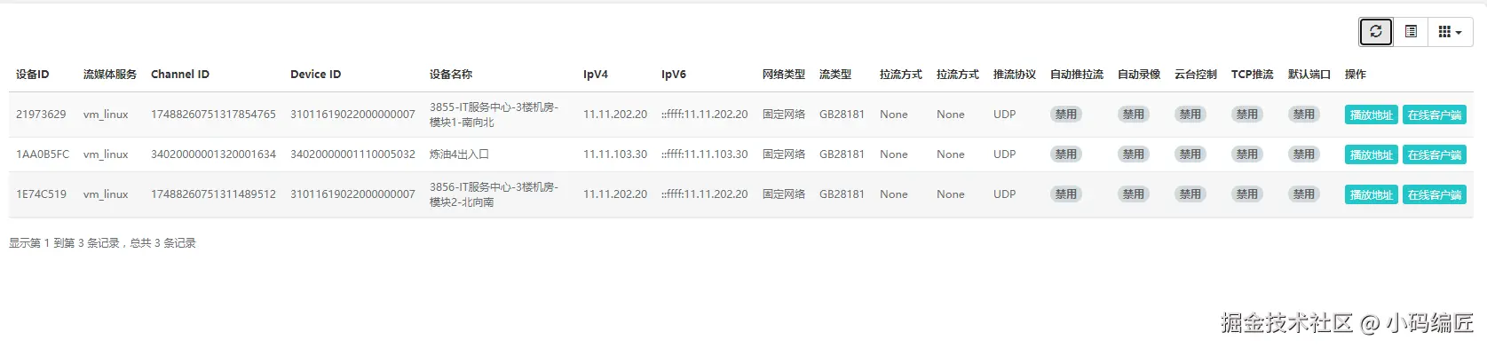 设备列表:通过 AKStream 服务自动添加 SIP 设备到数据库,并可查看设备列表信息。