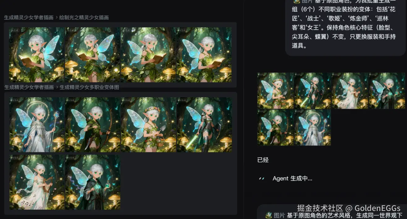 在工具的AI设计工作流中,上传你的“元角色”图,然后通过Agent智能共创,用自然语言指令批量修改特定属性。