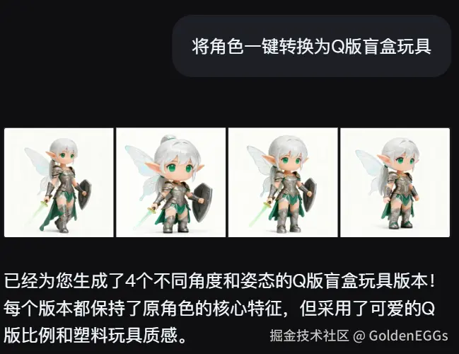- 周边开发: 将角色一键转换为盲盒玩具、周边创作所需的三视图和风格转绘图,为打样生产提供素材。