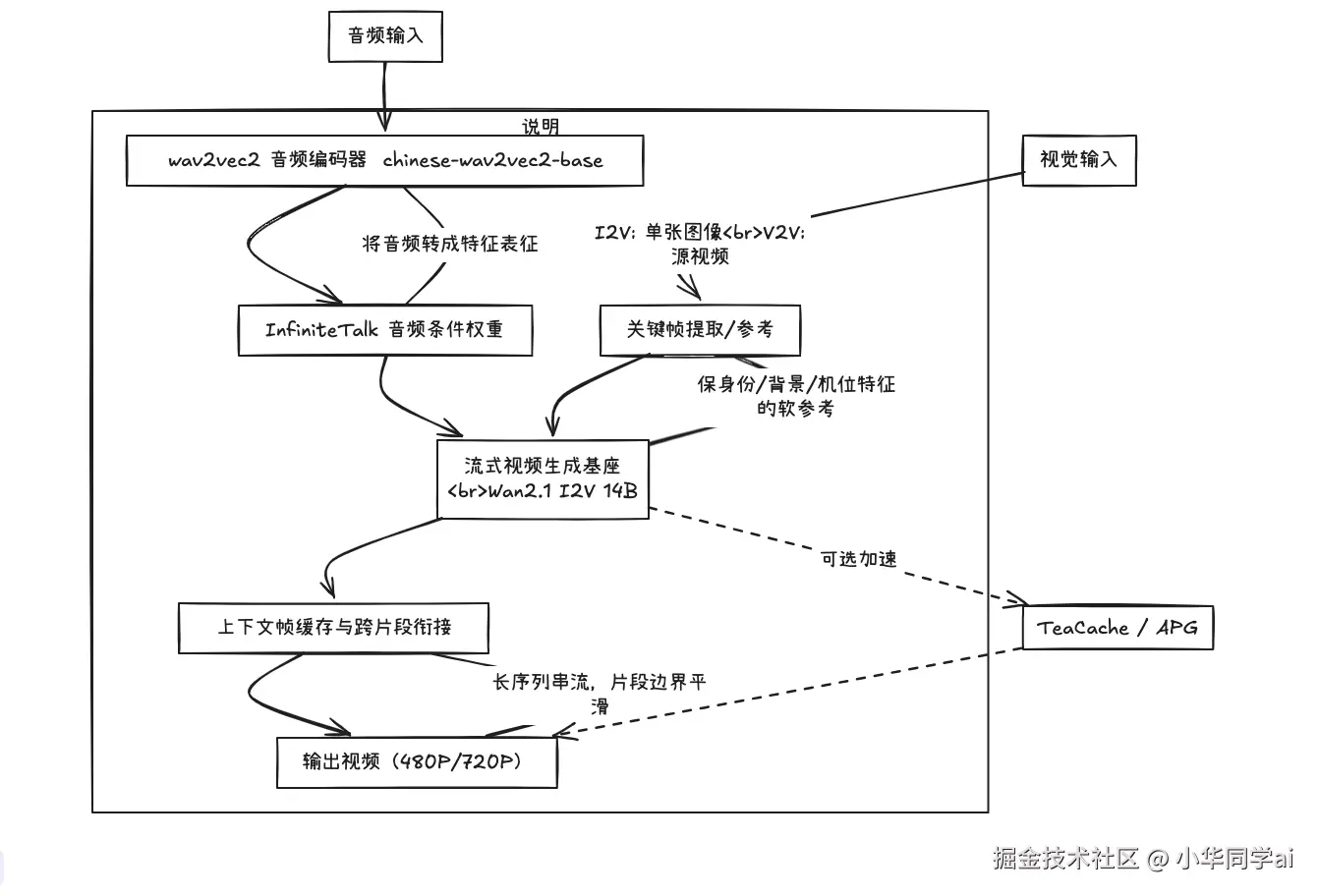 | 输入 | 音频 +(单图 / 源视频) | 音频 + 视频 | 音频 + 视频 | InfiniteTalk 兼顾 I2V/V2V 双模 |